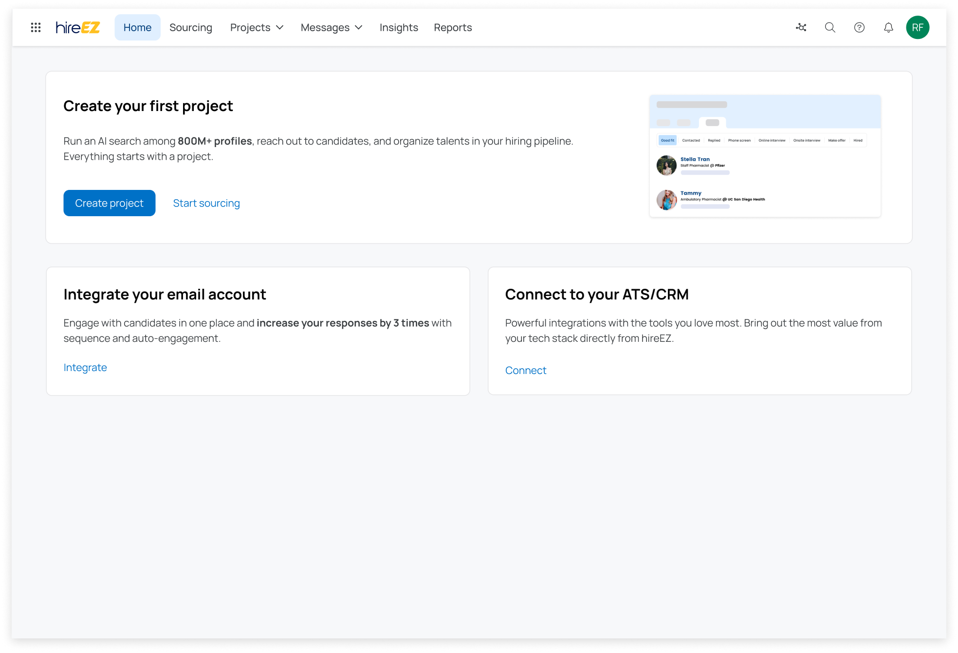 HireEZ is a Series B startup that helps recruiters efficiently find and manage candidates. The previous home dashboard was cluttered, lacked clear action pathways, and provided a suboptimal user experience.